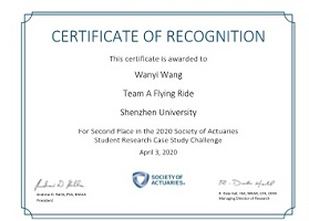 近日,我校数学与统计学院研究生王婉宜在北美精算师协会(SOA)全球学生案例研究挑战赛中荣获了第二名。这是深大首次组队参加SOA全球学生案例研究挑战赛,并成为第一支进入比赛三甲的国内高校队伍。王婉宜系我校参赛队伍中唯一一名研究生。