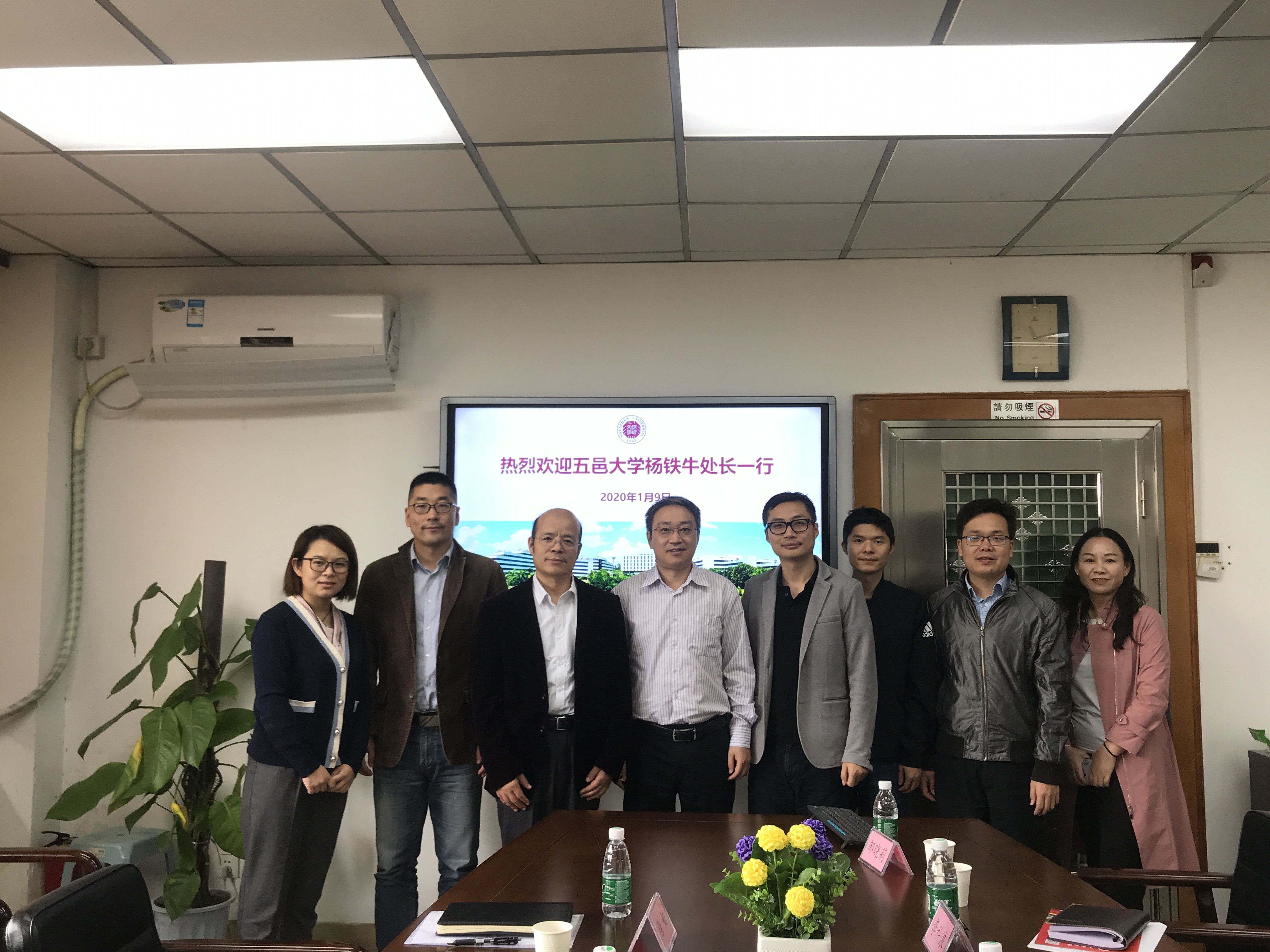 2020年1月9日上午,五邑大学研究生处杨铁牛处长、鲍松堂科长、徐珊老师一行来我校调研交流。研究生院副院长李国、综合办、培养办、研招办、研究生教育发展中心负责老师与客人进行了座谈交流。