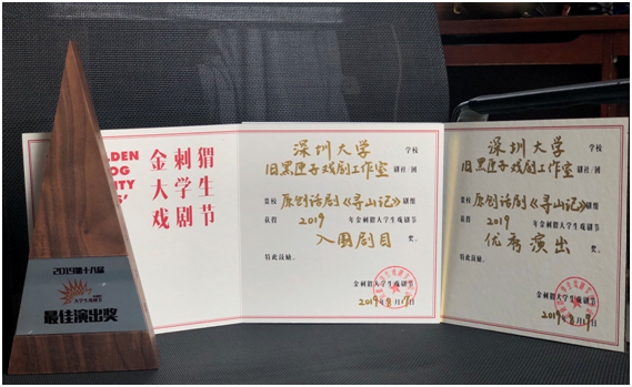 第十八届金刺猬大学生戏剧节于2019年8月落下帷幕,艺术学部戏剧影视学院研究生和本科生创演剧目《寻山记》,获得“入围剧目奖”及“优秀演出奖”。该剧由艺术学部戏剧影视学院2017级戏剧与影视学研究生编排,10名17级、18级本科生参演。