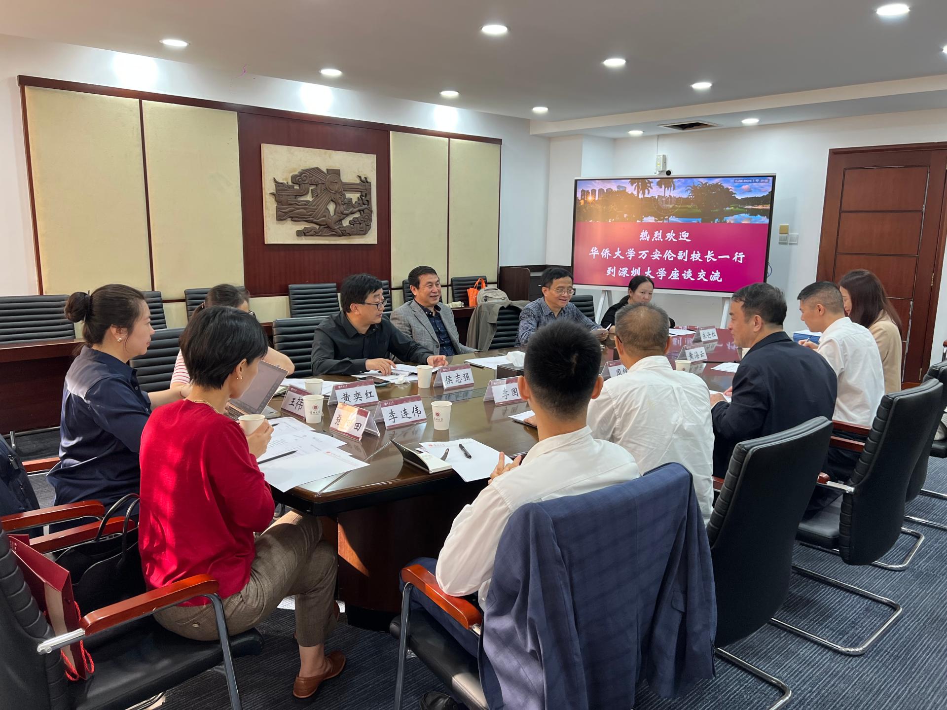 随后,双方还就专业学位硕士和学术学位硕士培养机制差别、培养方案制定、学位论文形式、时间环节管理等方面的工作经验及传播学院研究生培养举措进行交谈并交换意见。双方讨论热烈,华侨大学研究生院院长曾志兴对深圳大学发出诚挚邀请,并表示期待未来双方能够各扬所长,加强交流与合作。