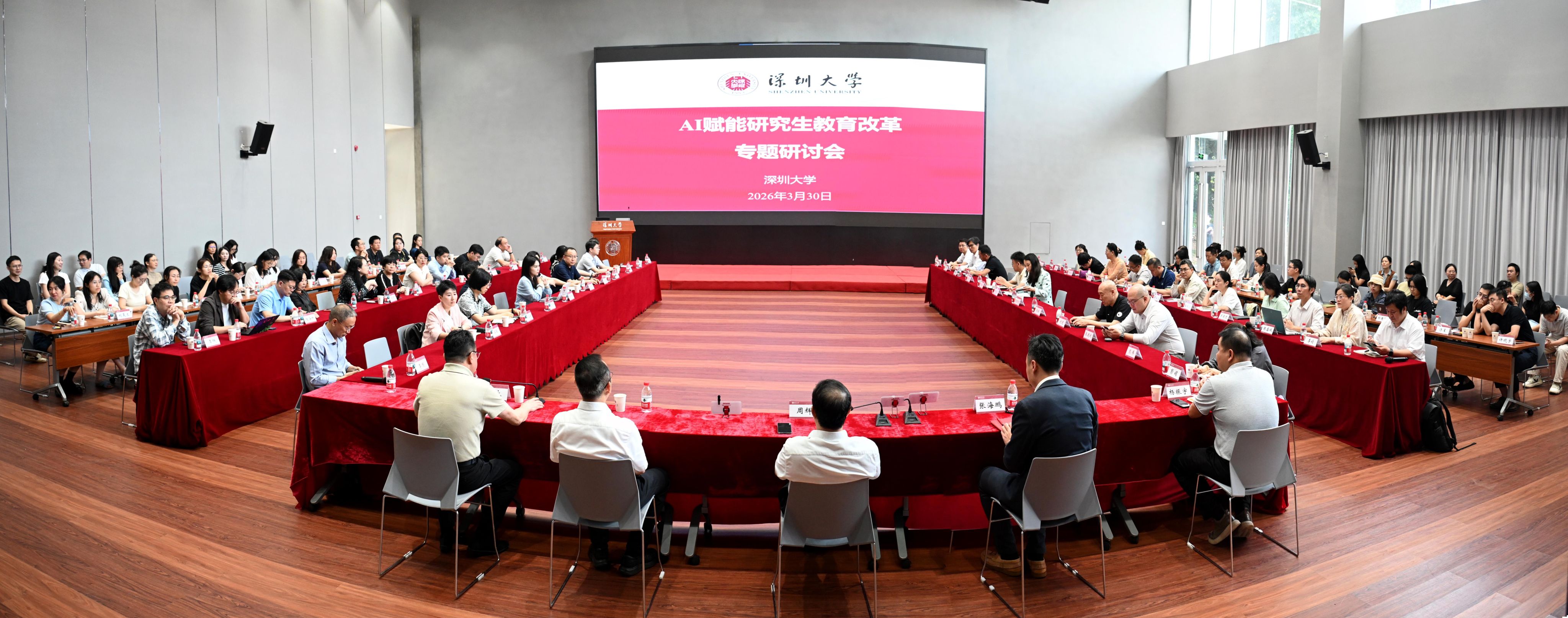 3月30日下午,AI赋能研究生教育改革专题研讨会在粤海校区校友广场多功能厅举行。深圳大学副校长周辉出席会议,研究生院院长刘永主持会议;党委组织统战部、党委宣传部相关负责人,各学院(部)主管研究生工作的院领导及研究生秘书,华为公司高教军团市场总监张海鹏及相关负责人以及深圳大学研究生院全体人员参加会议。