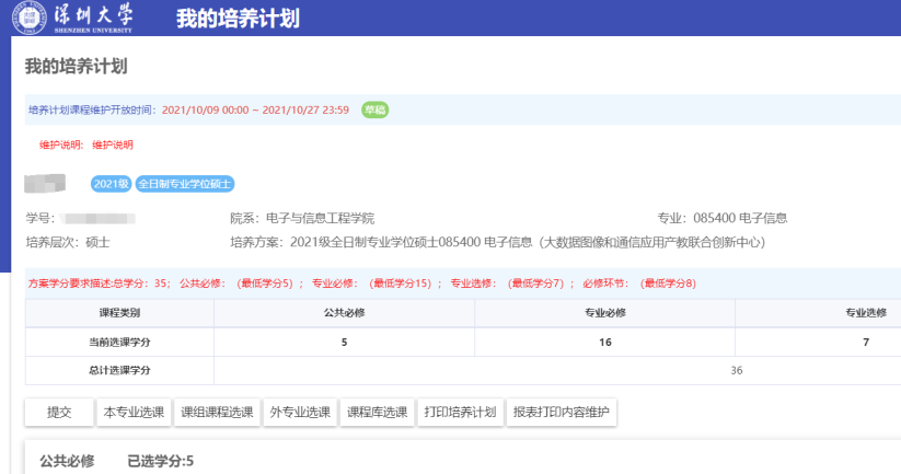 (1)10月24日—10月30日:已完成师生互选的学生进入网上办事大厅—研究生服务—培养计划申请—完成本专业选课—完成报表打印内容维护填写—提交培养计划;